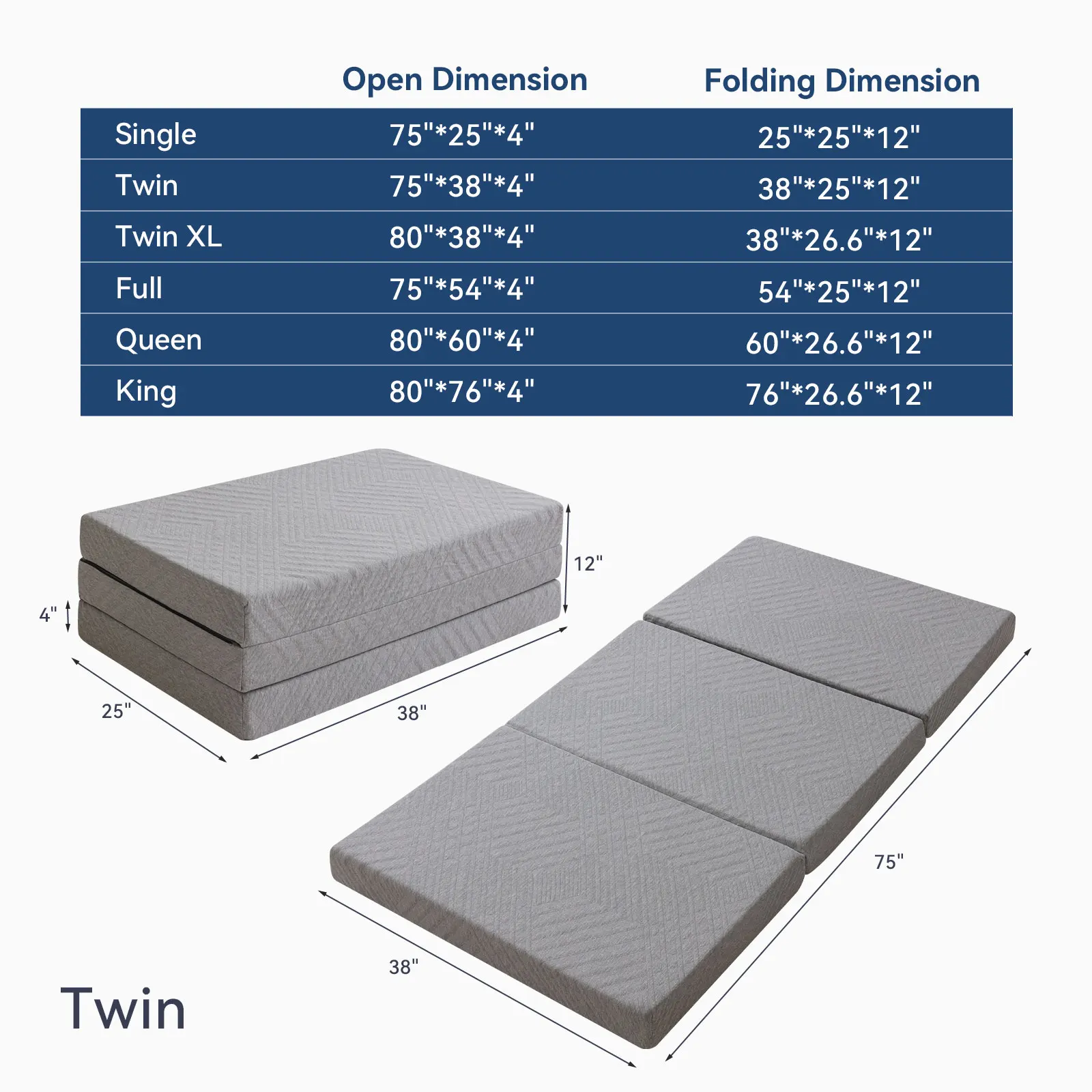 Portable trifold mattress is suitable for travel, camping, yoga and dormitory